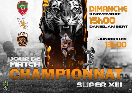 Super XIII: Albi Rugby League 22 - Carcassonne XIII 12 (MT.: 16-6). Réduits à 12, dès la 25e minute de jeu, nos joueurs de Super XIII avec une défense de fer, ont su prendre le meilleur sur cette équipe de Carcassonne, qui malgré les absences, était venu avec de grosses ambitions.
